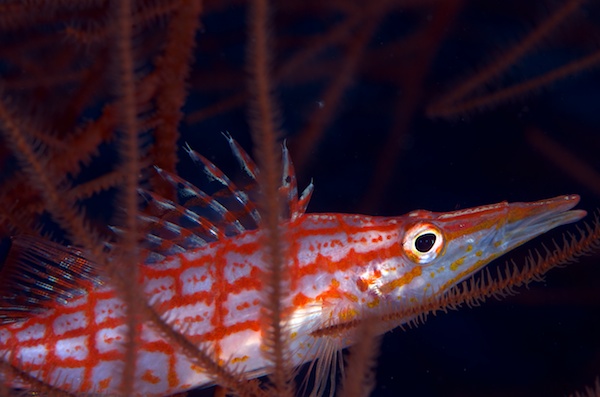 アニラオのクダゴンベ。英名はLongnose hawkfishというそうな。